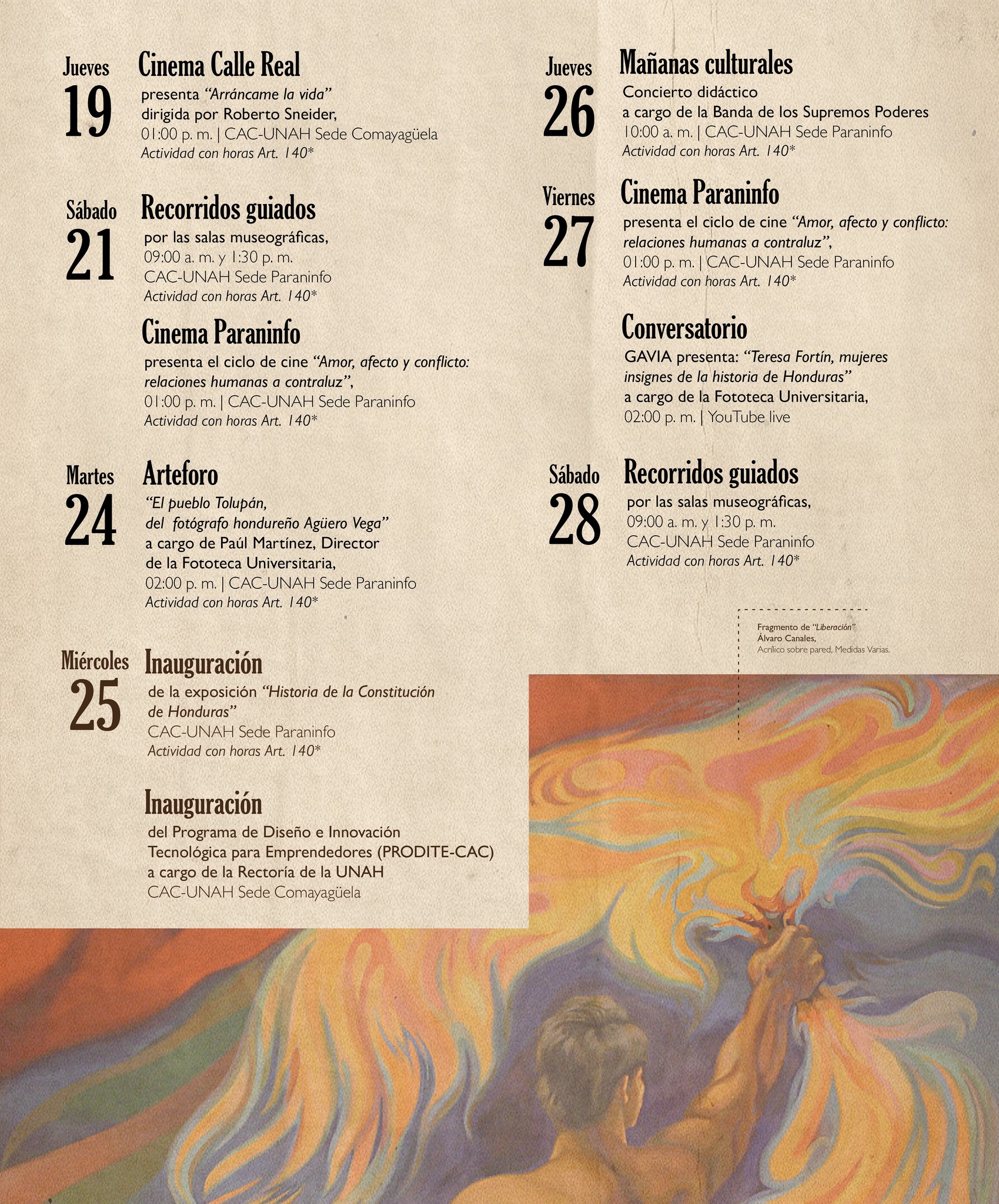 Todas las actividades del CAC-UNAH son gratuitas y abiertas al público.