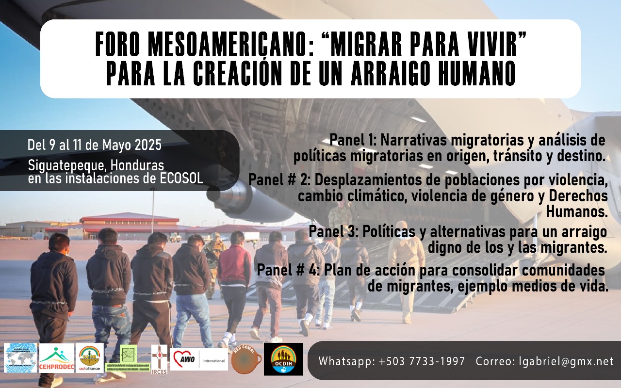 En un esfuerzo conjunto por analizar y proponer soluciones a las complejas dinámicas de la migración en la región mesoamericana, se llevará a cabo el Foro Mesoamericano “Migrar para vivir”, Búsqueda de Estrategias para la Creación de un Arraigo Humano, del 9 al 11 de mayo de 2025 en las instalaciones de ECOSOL, Siguatepeque, Comayagua, Honduras, C.A.