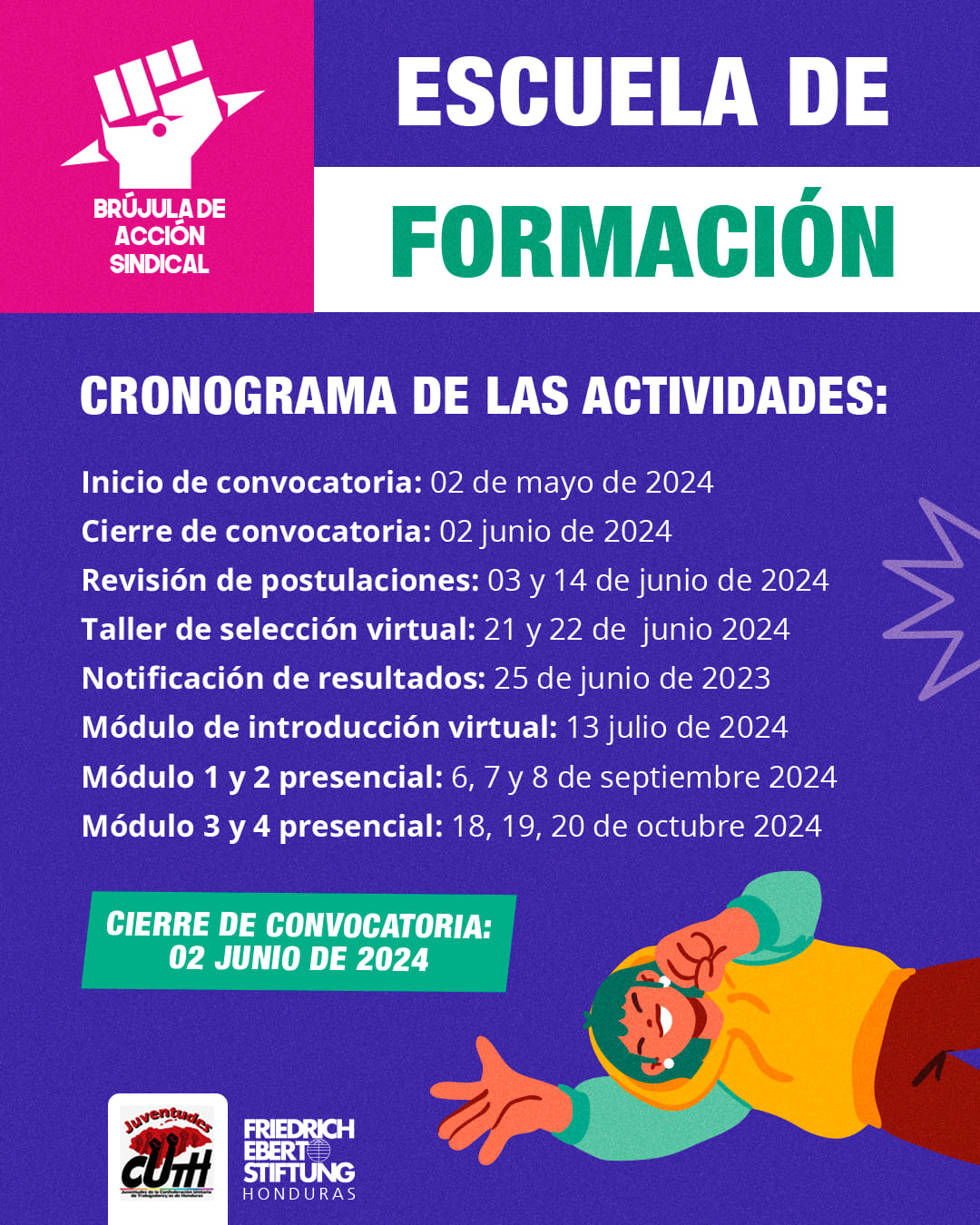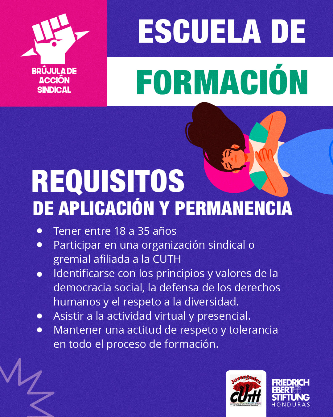 🪧Las Juventudes de la Confederación Unitaria de Trabajadores de Honduras y la Fundación Friedrich Ebert te invitan a postular al proceso de formación dirigido a las juventudes organizadas en sindicatos y gremios afiliados a la CUTH.