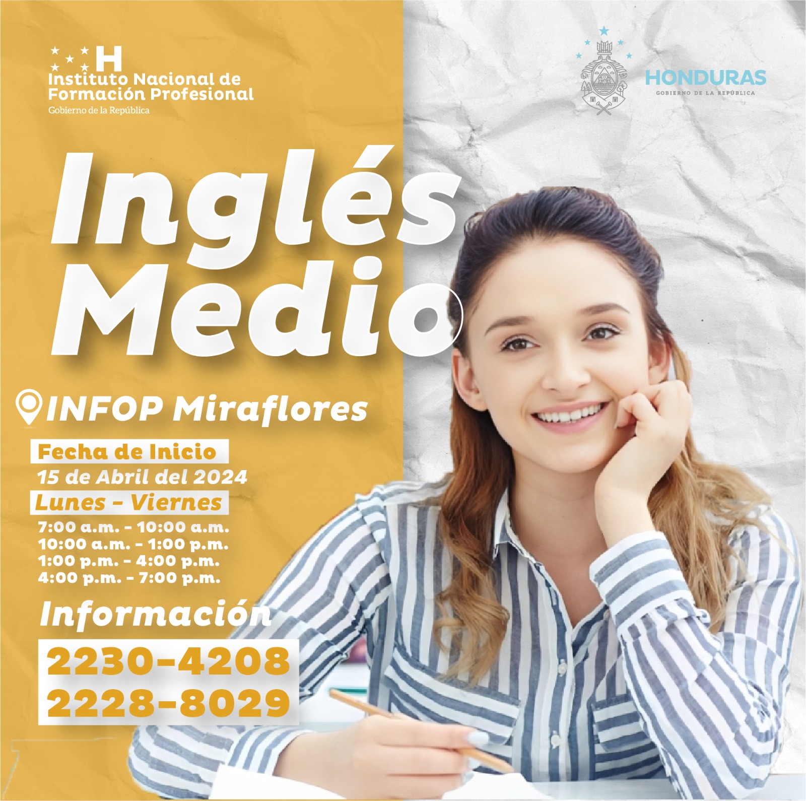 Visítanos en INFOP Miraflores, en las oficinas de Promoción e Inscripción, nuestro horario de atención es de lunes a viernes de 7:30 a.m. - 3:30 p.m.