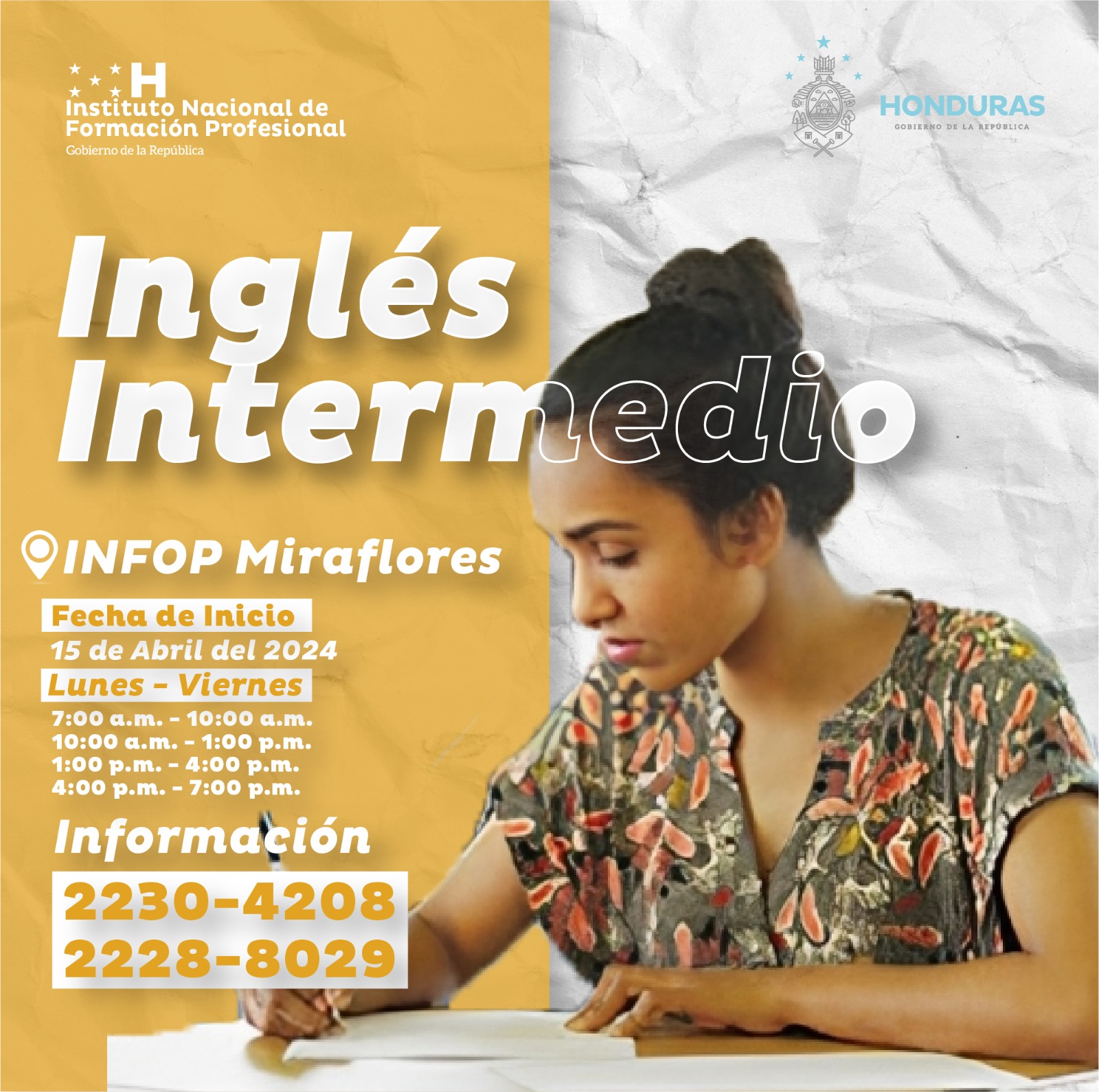 INFOP Miraflores, te brinda la oportunidad de capacitarte completamente gratis en los cursos de “Inglés básico, intermedio, medio, avanzado y conversacional" modalidad presencial, este idioma es una necesidad para comunicarse y acceder al mercado laboral.