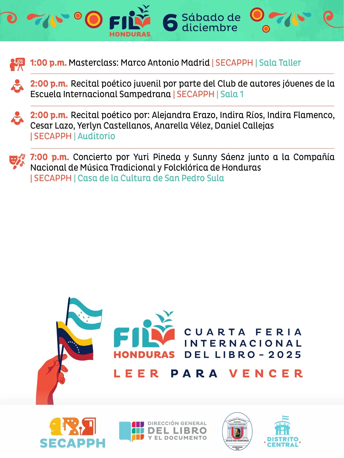 Agenda el sábado, 6 de diciembre, y las horas de las actividades que llamen tu atención y acompañanos en esta IV edición en la biblioteca de la Universidad Pedagógica Nacional Francisco Morazán de San Pedro Sula. ![]()