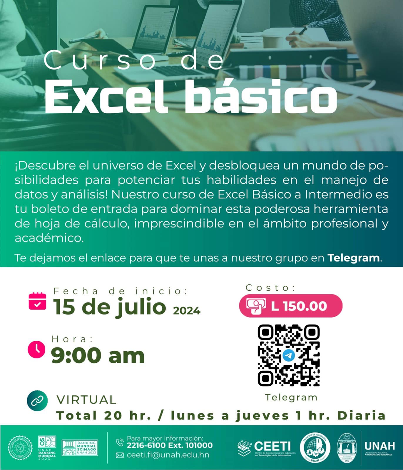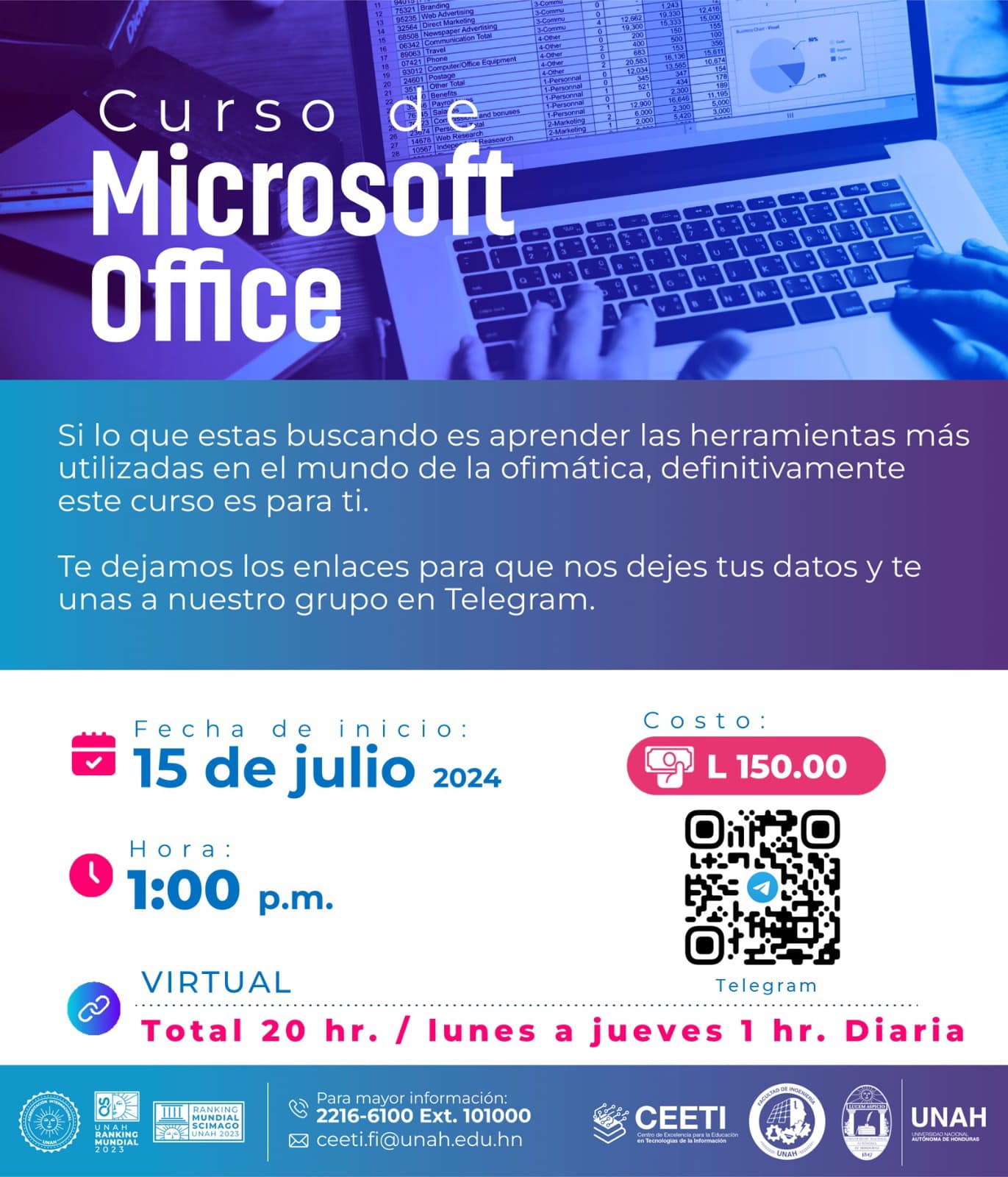 Todos nuestros cursos están diseñados para brindarte una base sólida y práctica en cada área. Para más información e inscripciones, contáctanos en ceeti.fi@unah.edu.hn ¡Te esperamos!