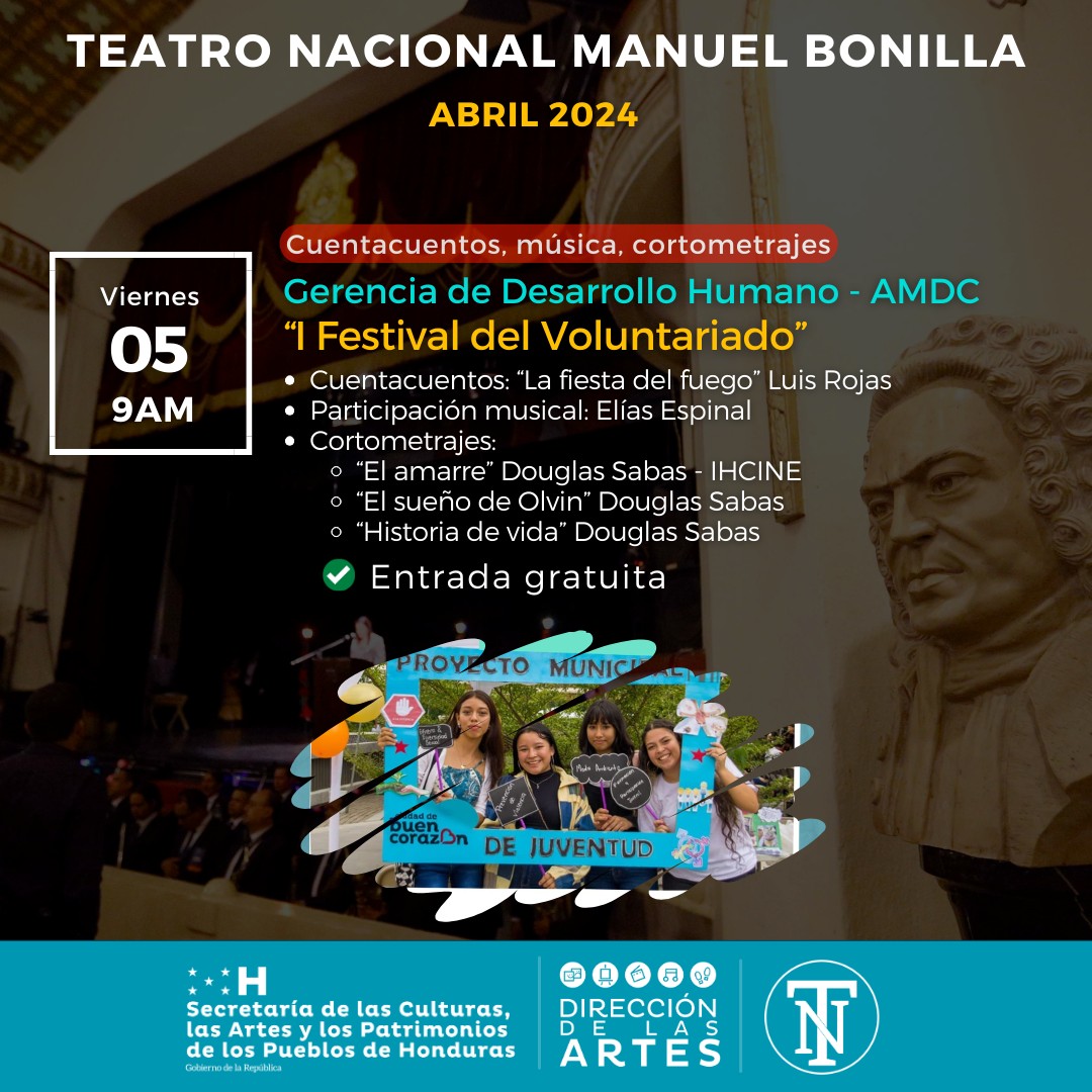 Agenda Cultural Teatro Manuel Bonilla Fecha de Inicio Viernes, Abril 5, 2024 - 09:00 AM Sábado, Abril 6, 2024 - 11:30 AM Martes, Abril 9, 2024 - 11:00 AM Jueves, Abril 11, 2024 - 07:00 PM Viernes, Abril 12, 2024 - 01:00 PM Sábado, Abril 13, 2024 - 02:00 PM Lunes, Abril 15, 2024 - 07:00 PM Martes, Abril 16, 2024 - 12:00 AM Arte Agenda Cultural Teatro Manuel Bonilla