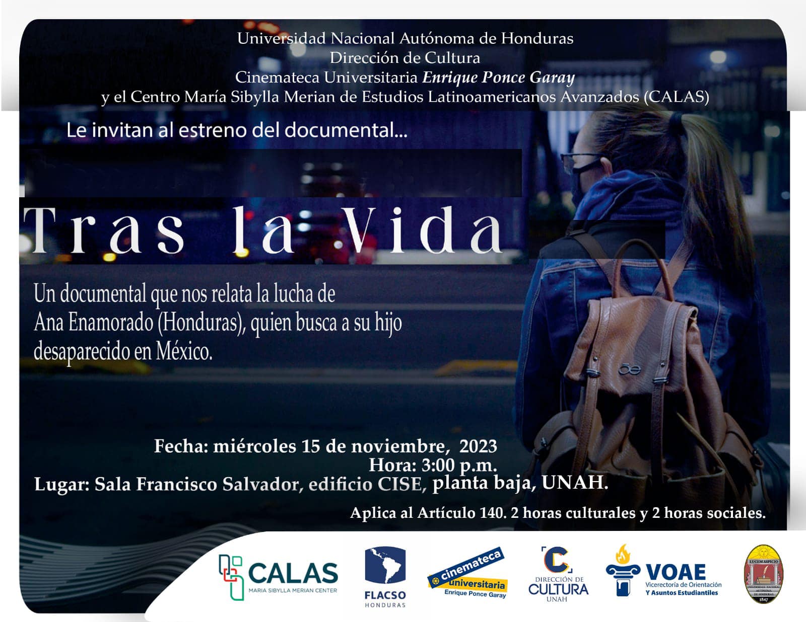 La Dirección de Cultura de la UNAH, la Cinemateca Universitaria Enrique Ponce Garay y FLACSO-Honduras, les invita al estreno del Documental: