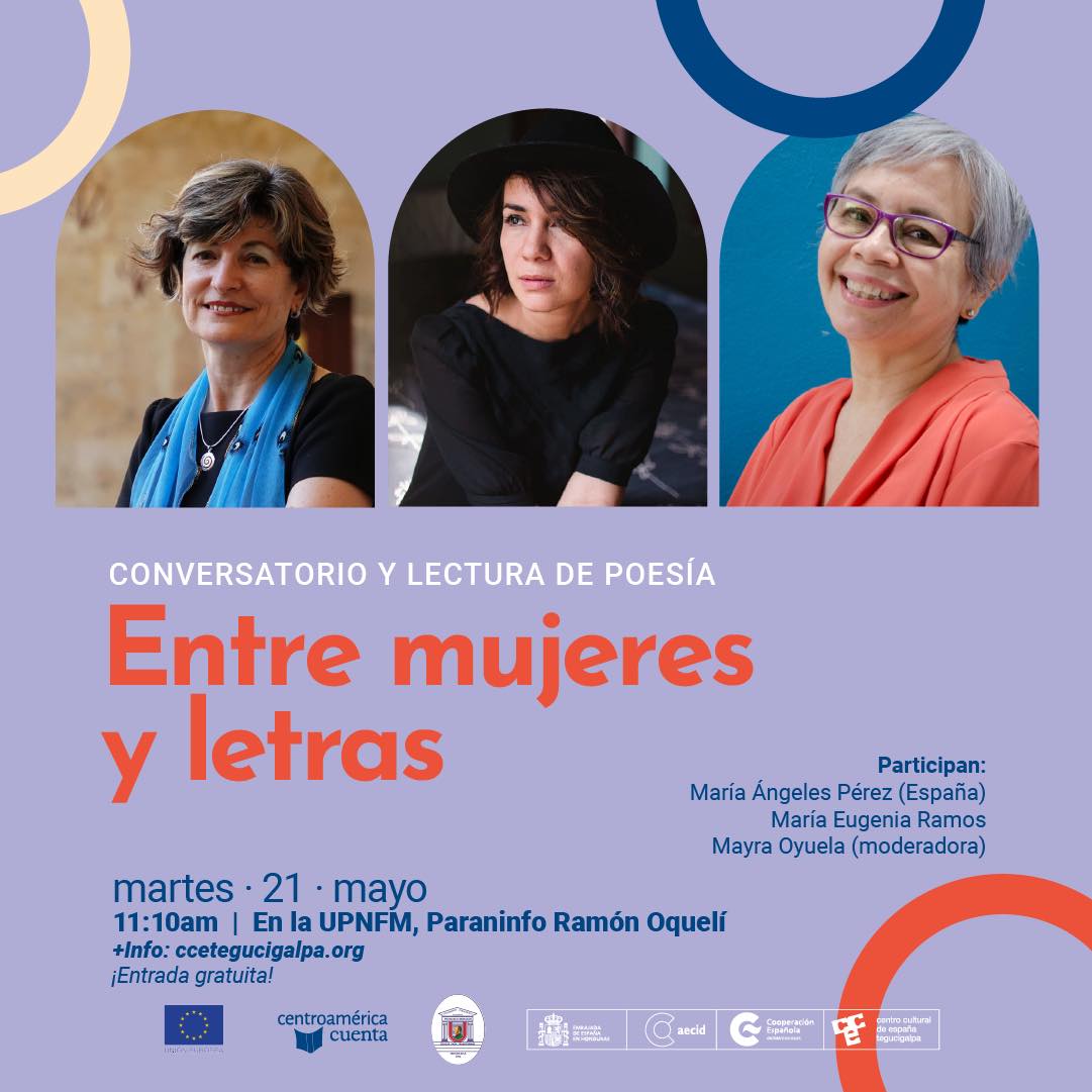 11:10 am - Entre mujeres y letras: Conversatorio y lectura de poesía con María Eugenia Ramos, María Ángeles Pérez y Mayra Oyuela.