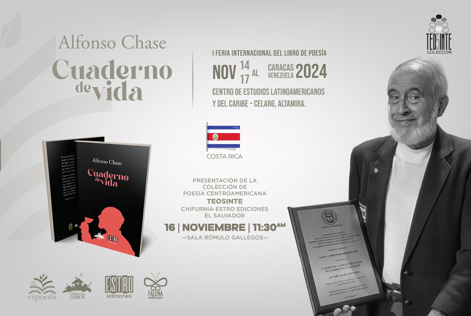 También tendremos la fortuna de presentar, en co-edición con el sello editorial hermano salvadoreño ESTRO, la colección Teo5inte, de poesía centroamericana, con los títulos