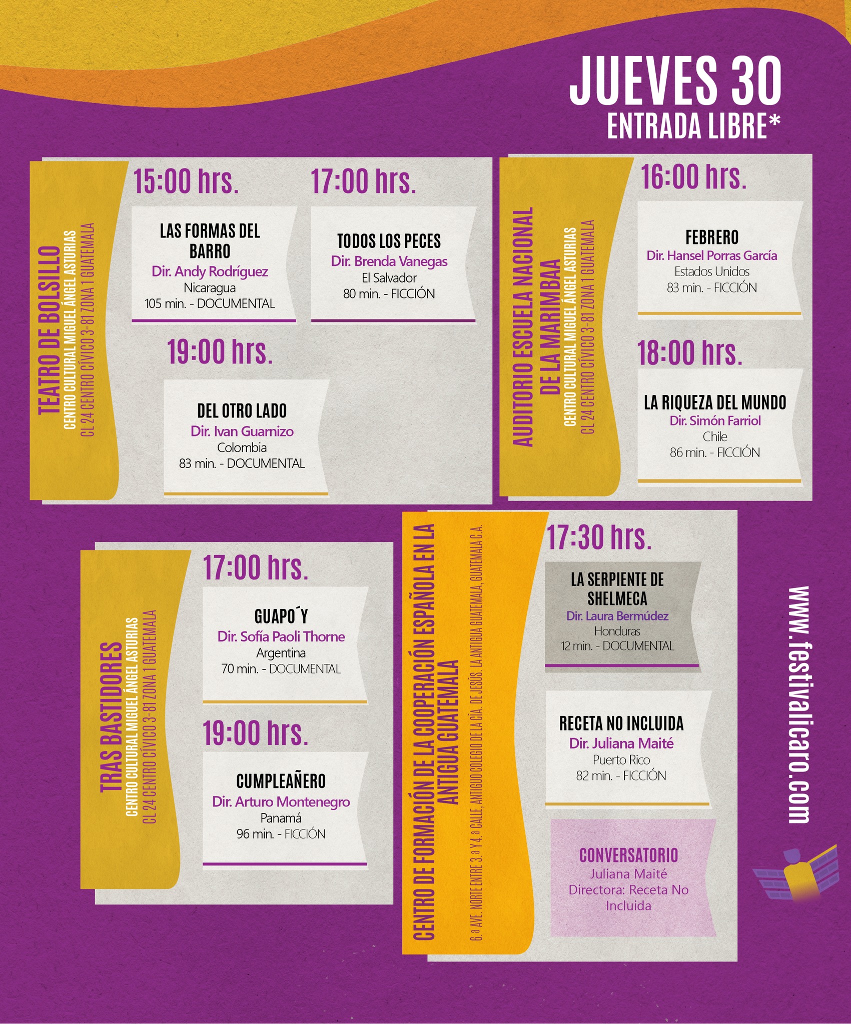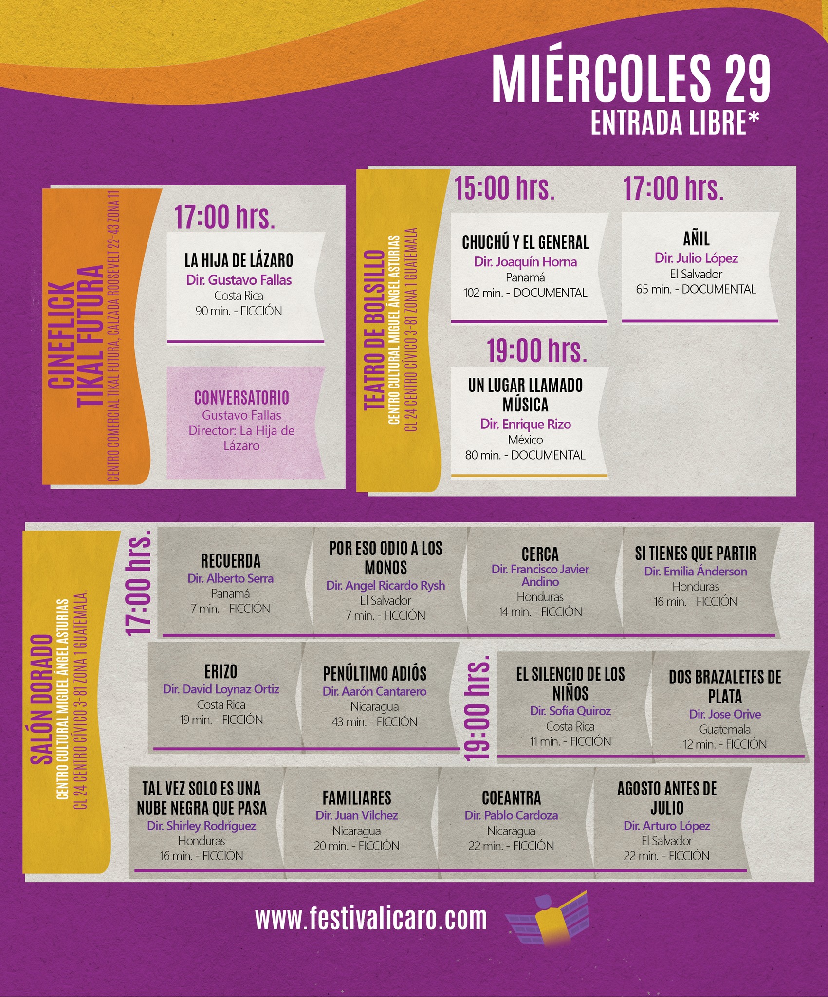 Programación del XXVI Festival Internacional de Cine en Centroamérica del 29 de noviembre al 02 de diciembre