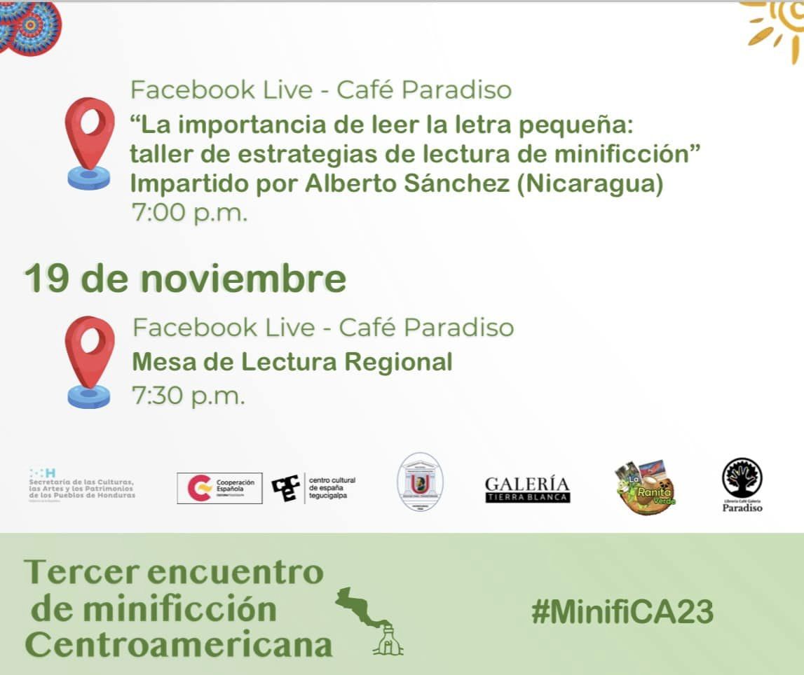 Te esperamos del 16 al 19 de noviembre en este encuentro que promete compartir la minficción, de la mano de escritoras y escritores centroamericanos.