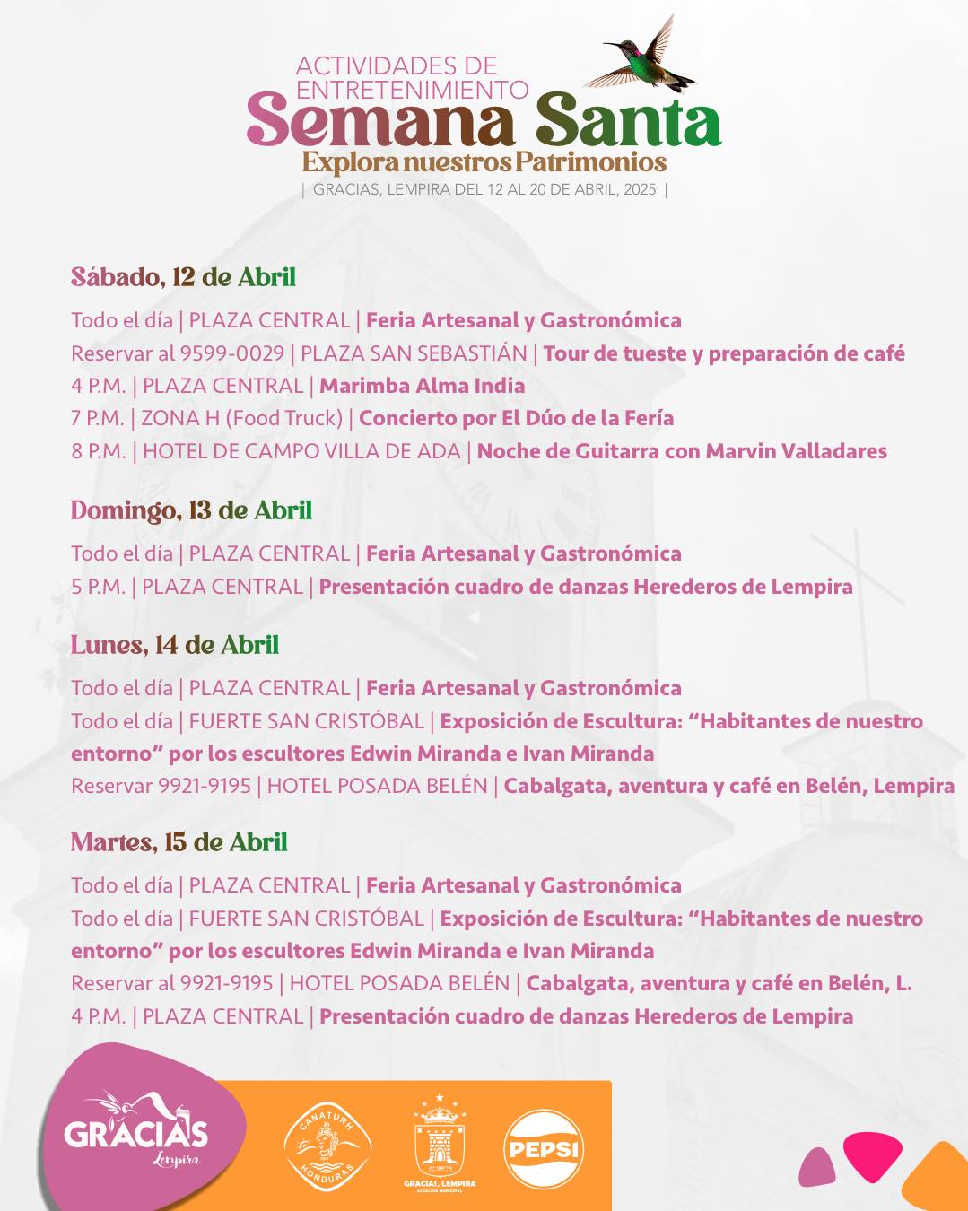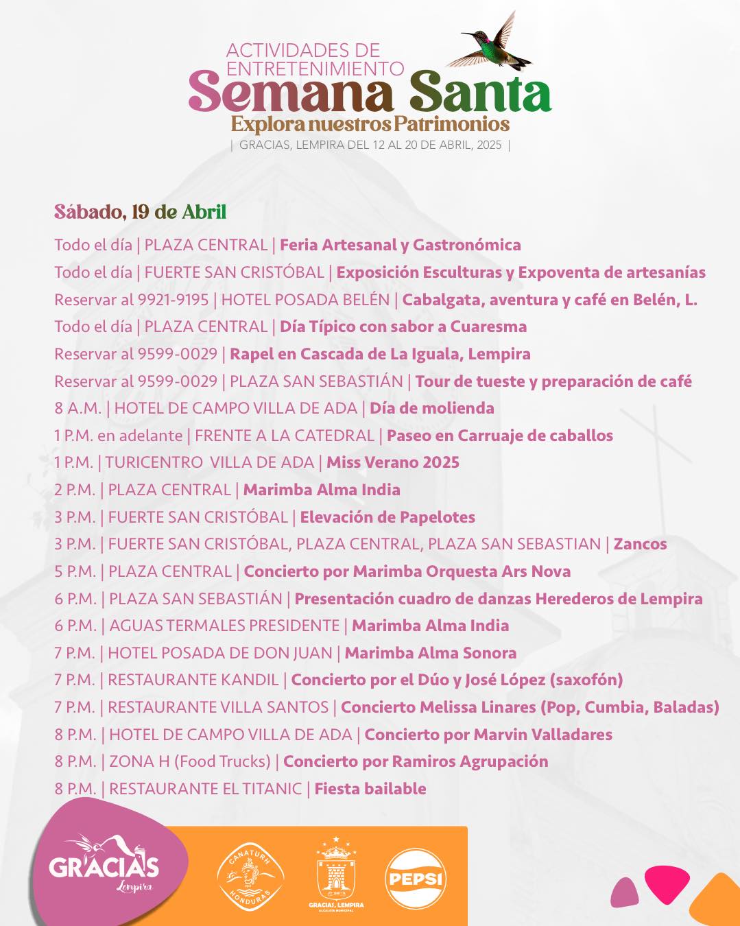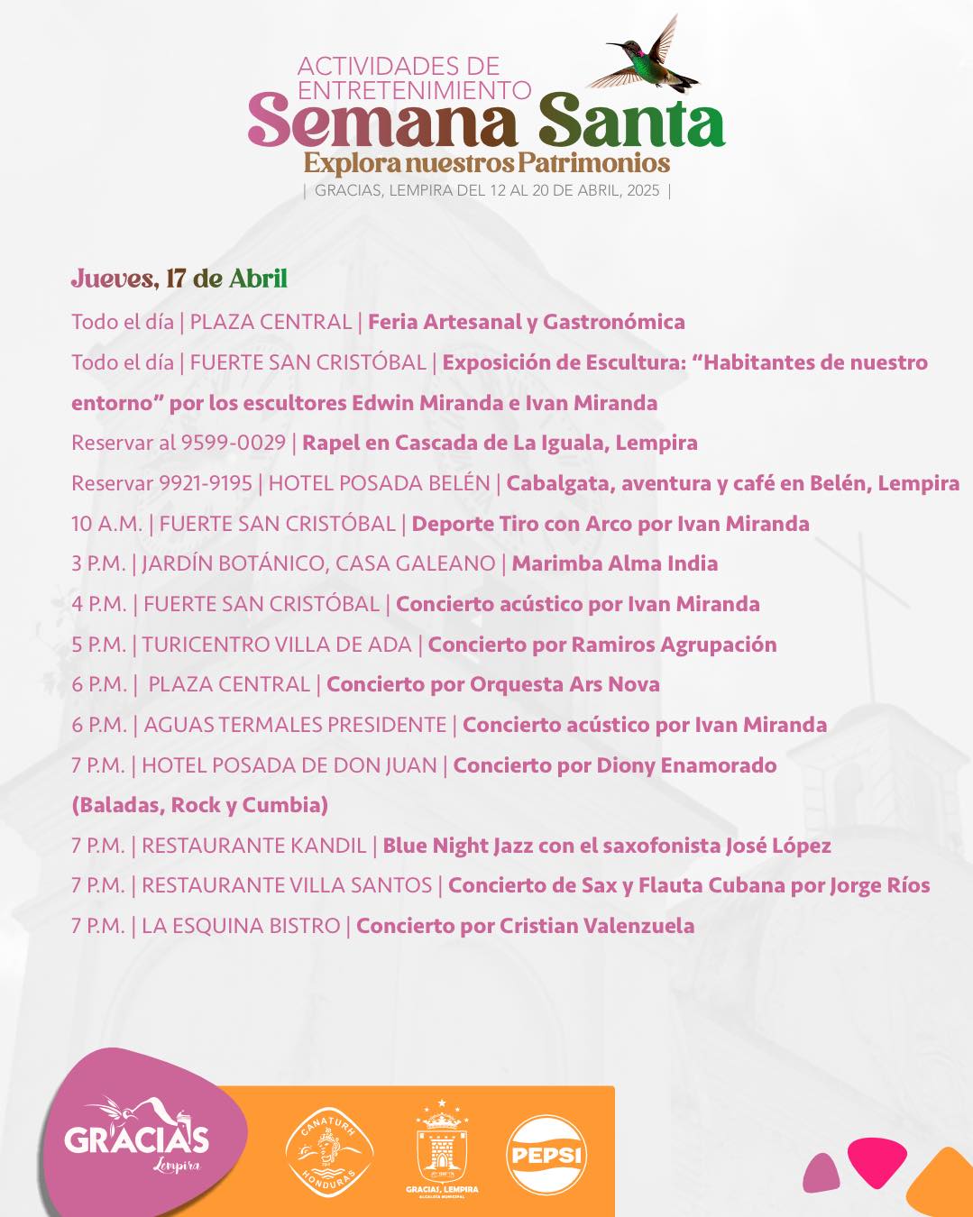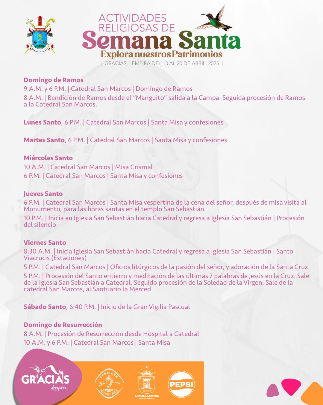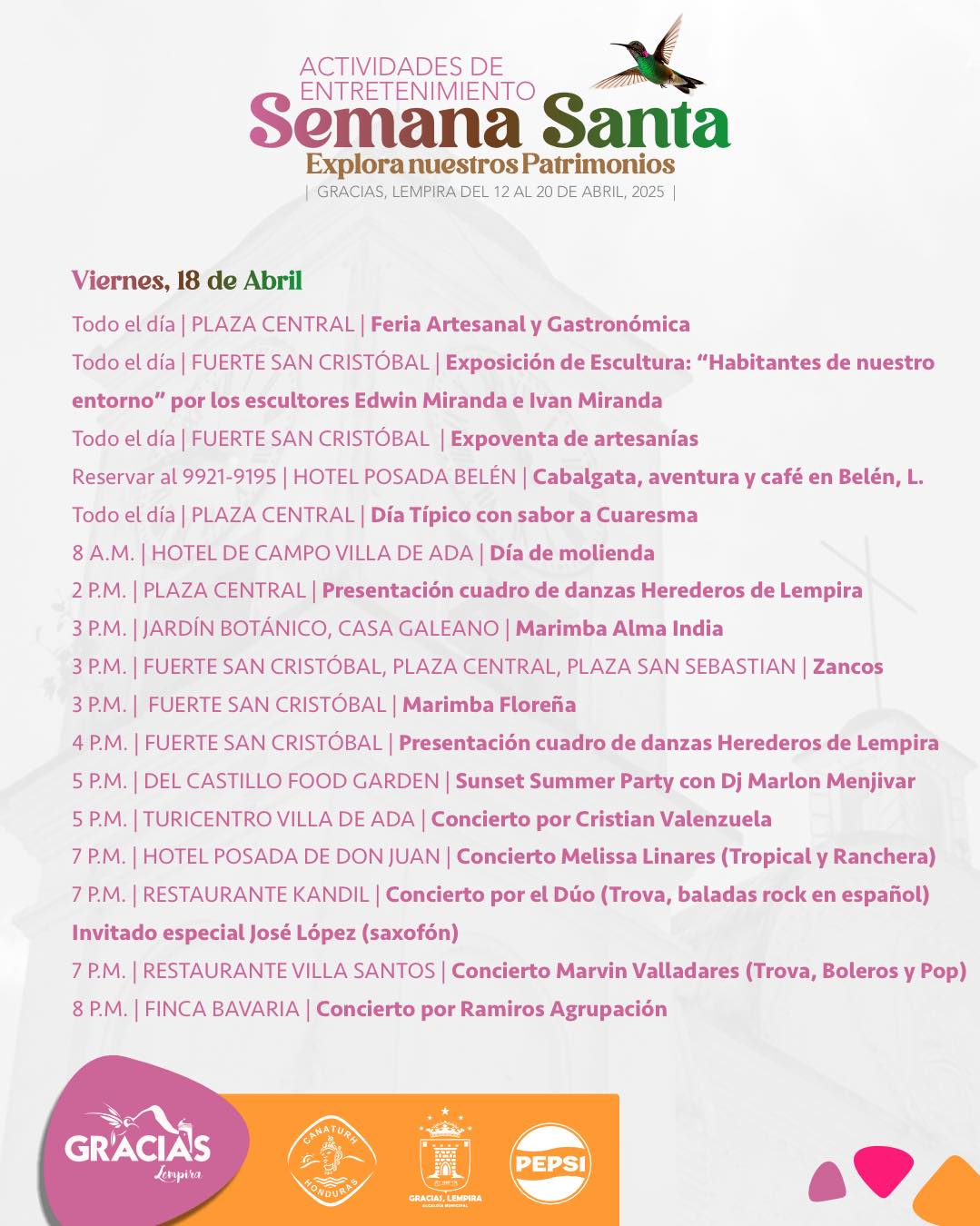 Gracias, Lempira les espera con este nutrido men煤 de actividades religiosas y de entretenimiento para esta encantadora Semana Santa ![]()