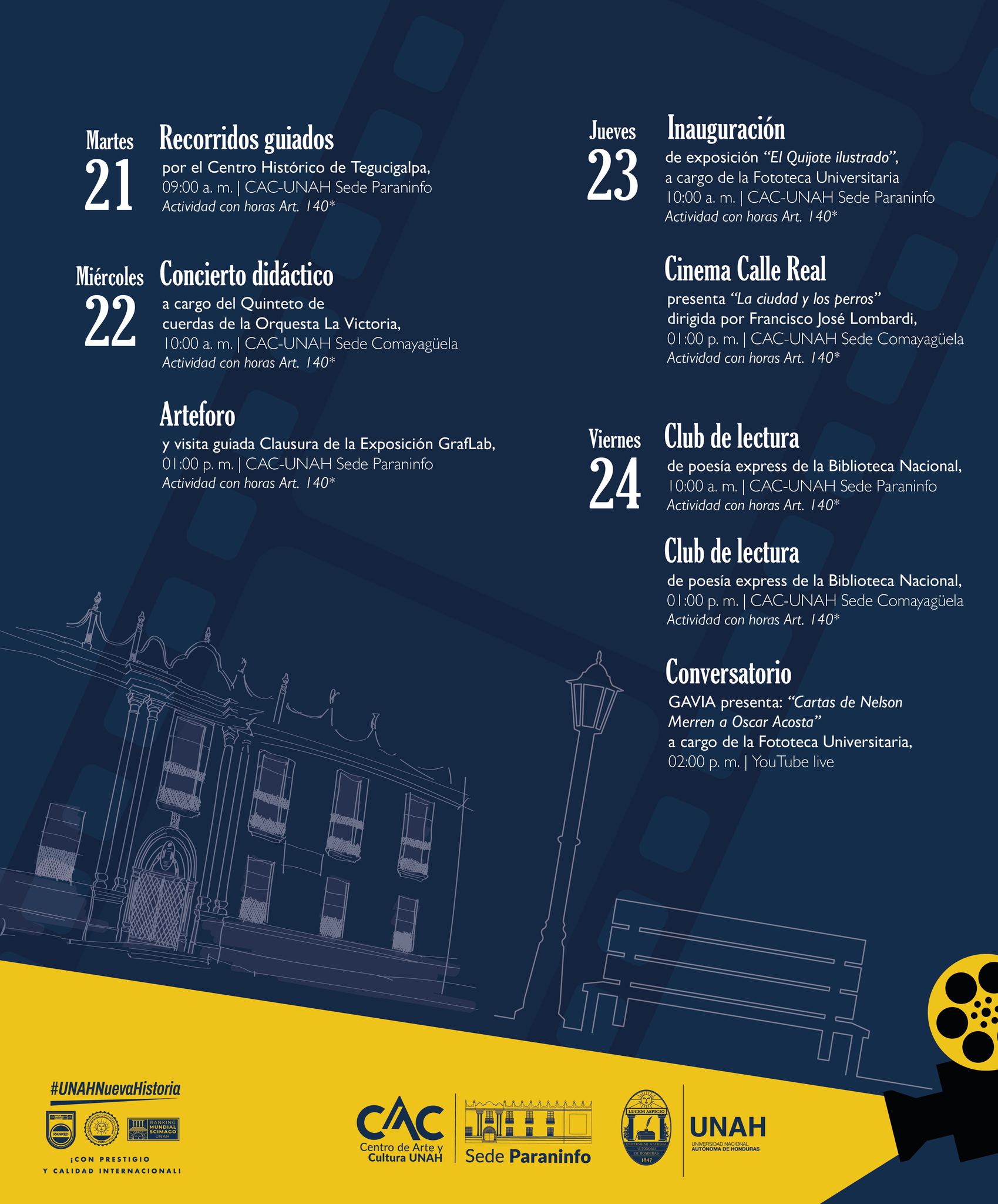 Todas las actividades del CAC-UNAH son gratuitas y abiertas al público.