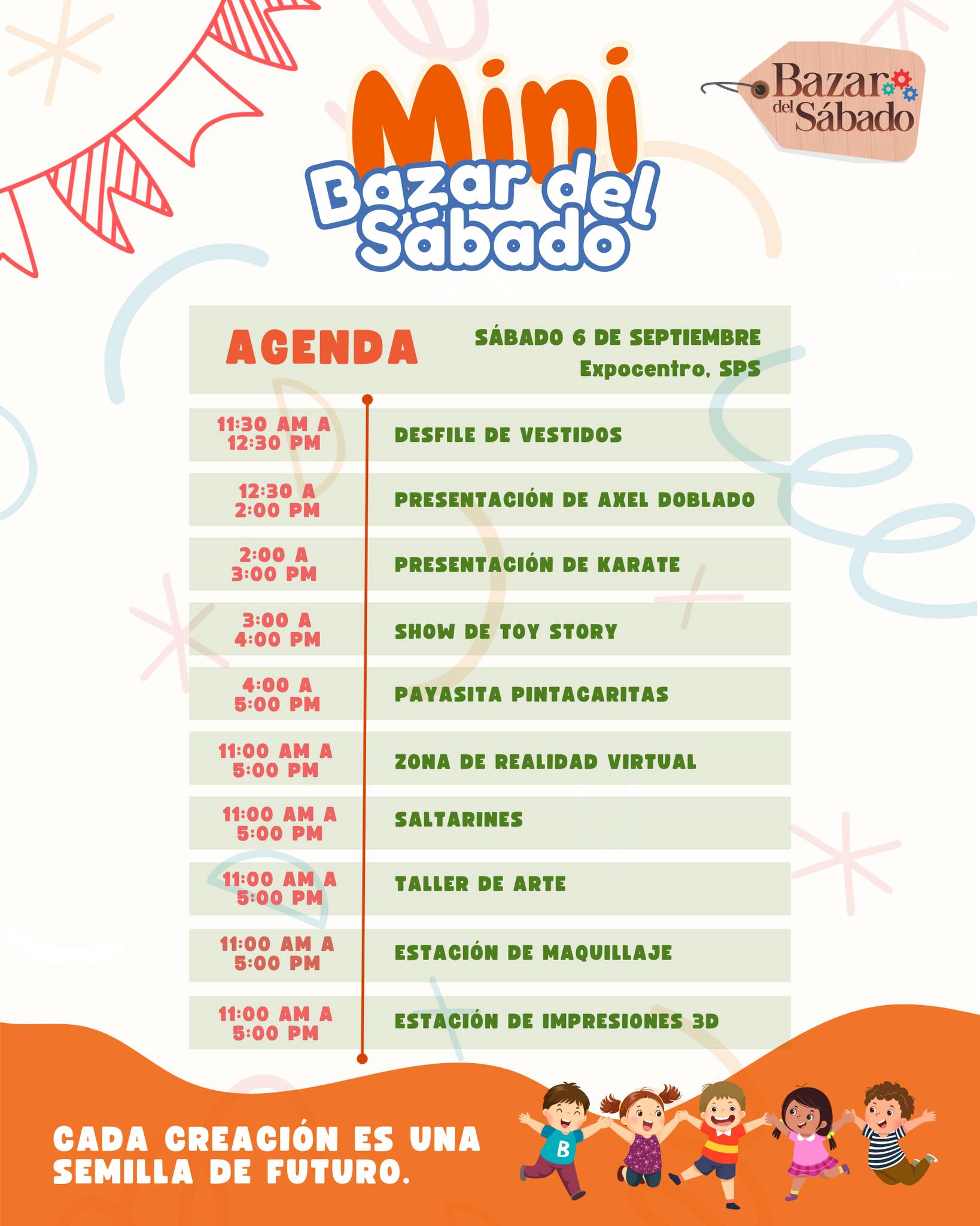 Este 6 de septiembre acompáñanos en el Mini Bazar del Sábado y sé parte de una jornada llena de actividades que inspiran y celebran la creatividad infantil.